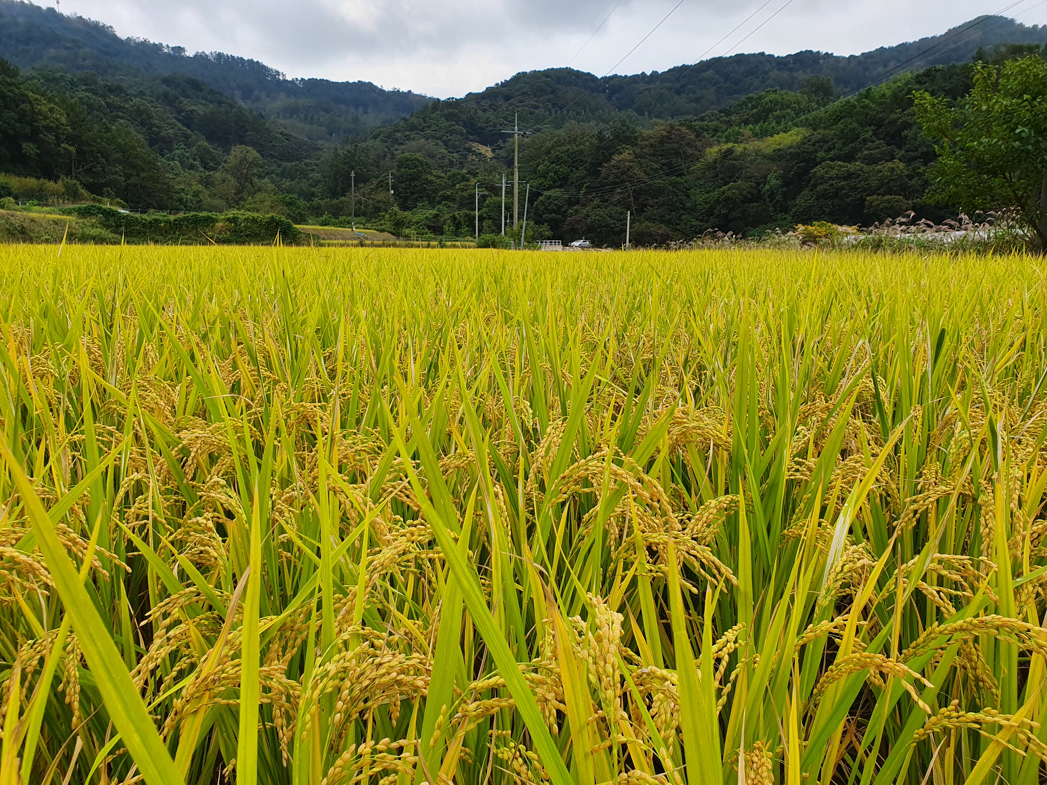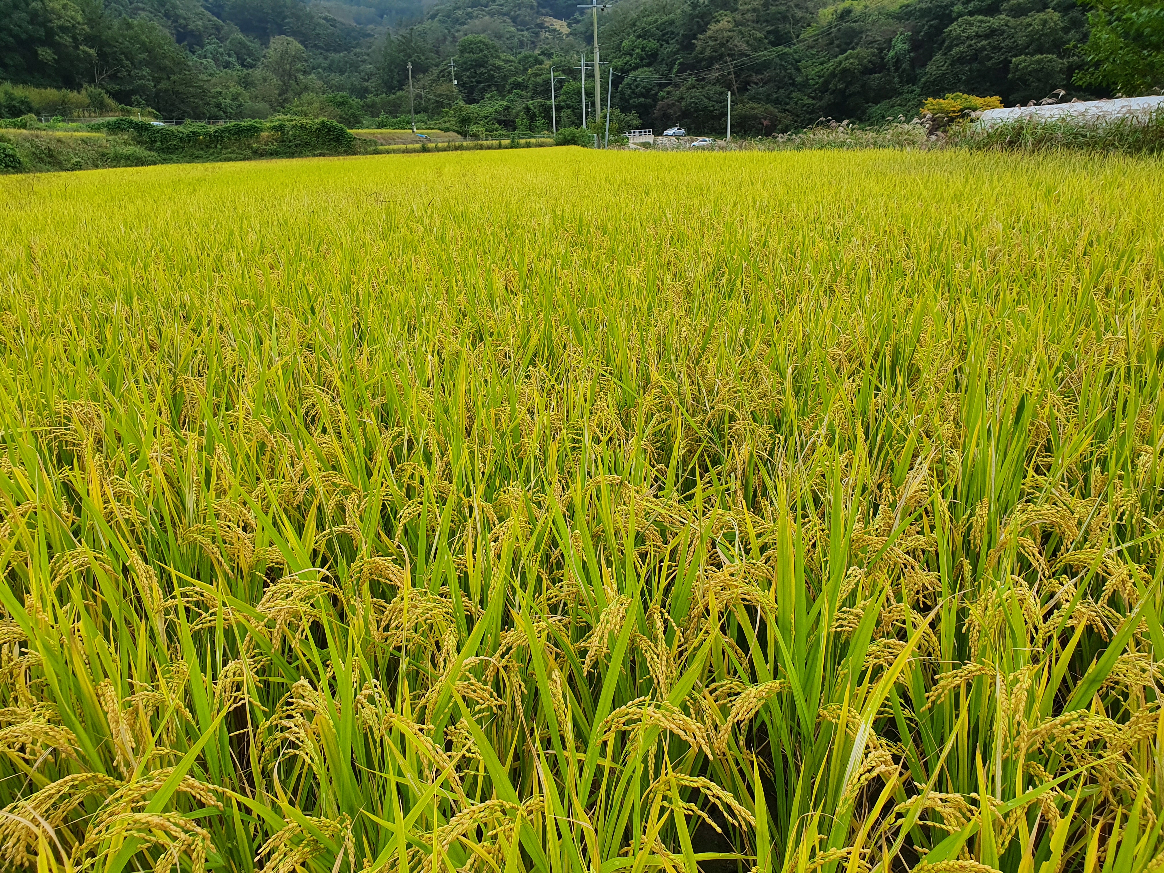 연노랑색 벼가 고개를 숙이고