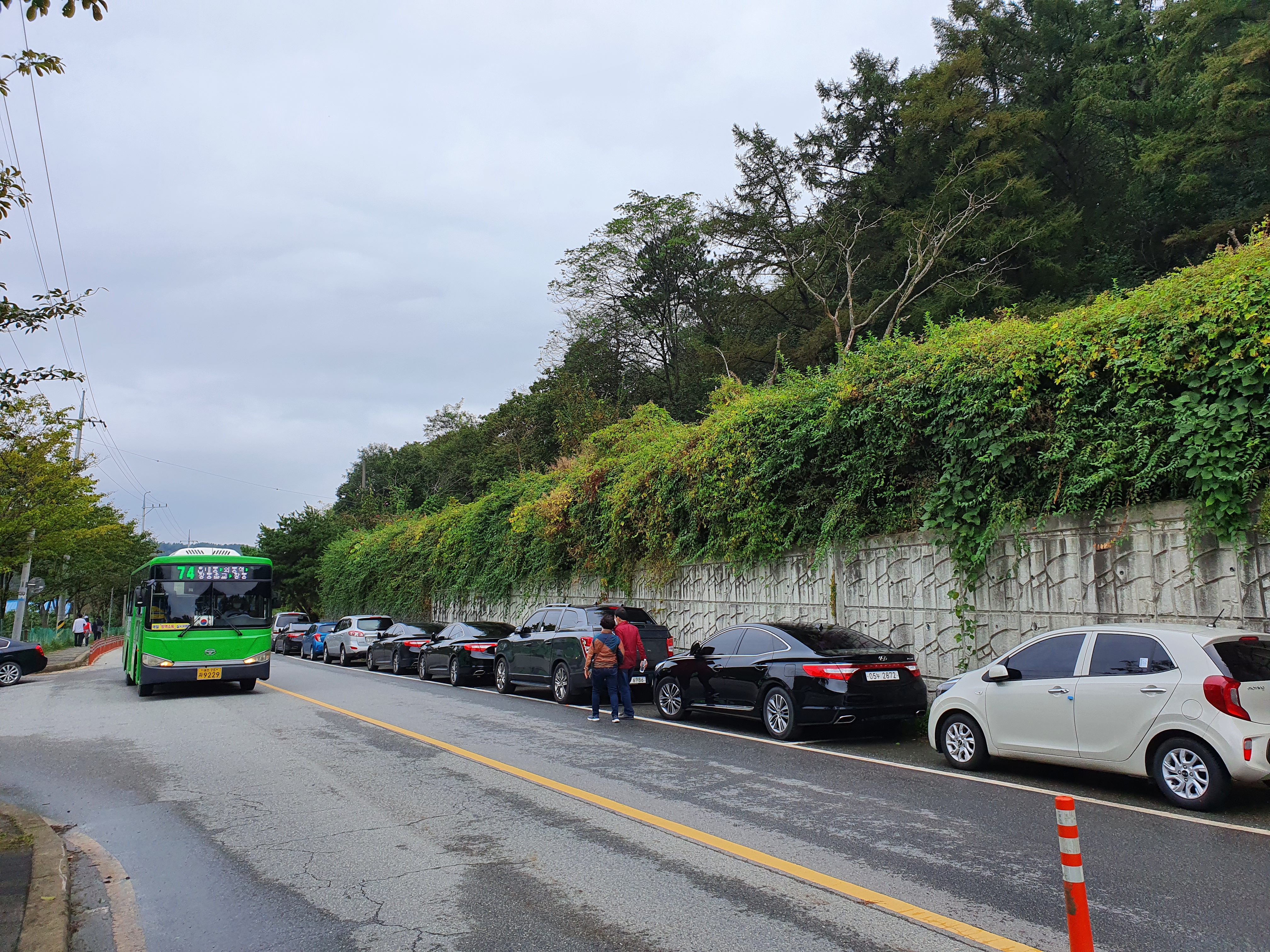 주차장에 만차라 산디마을 들어가는 도로 옆 주차장에