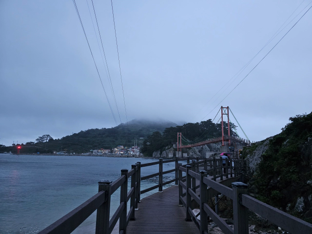 걸어서 10여분 거리에 만지도 들어가는 출렁다리가 있습니다.