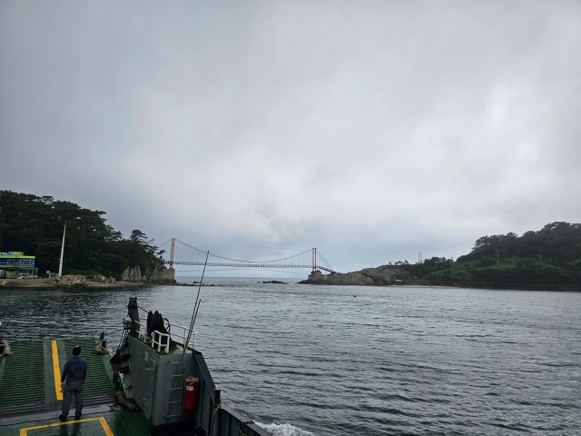 배 탄 지 10여분 조금 지난 것 같은데 멀리 연대도 만지도 출렁다리가 보입니다.