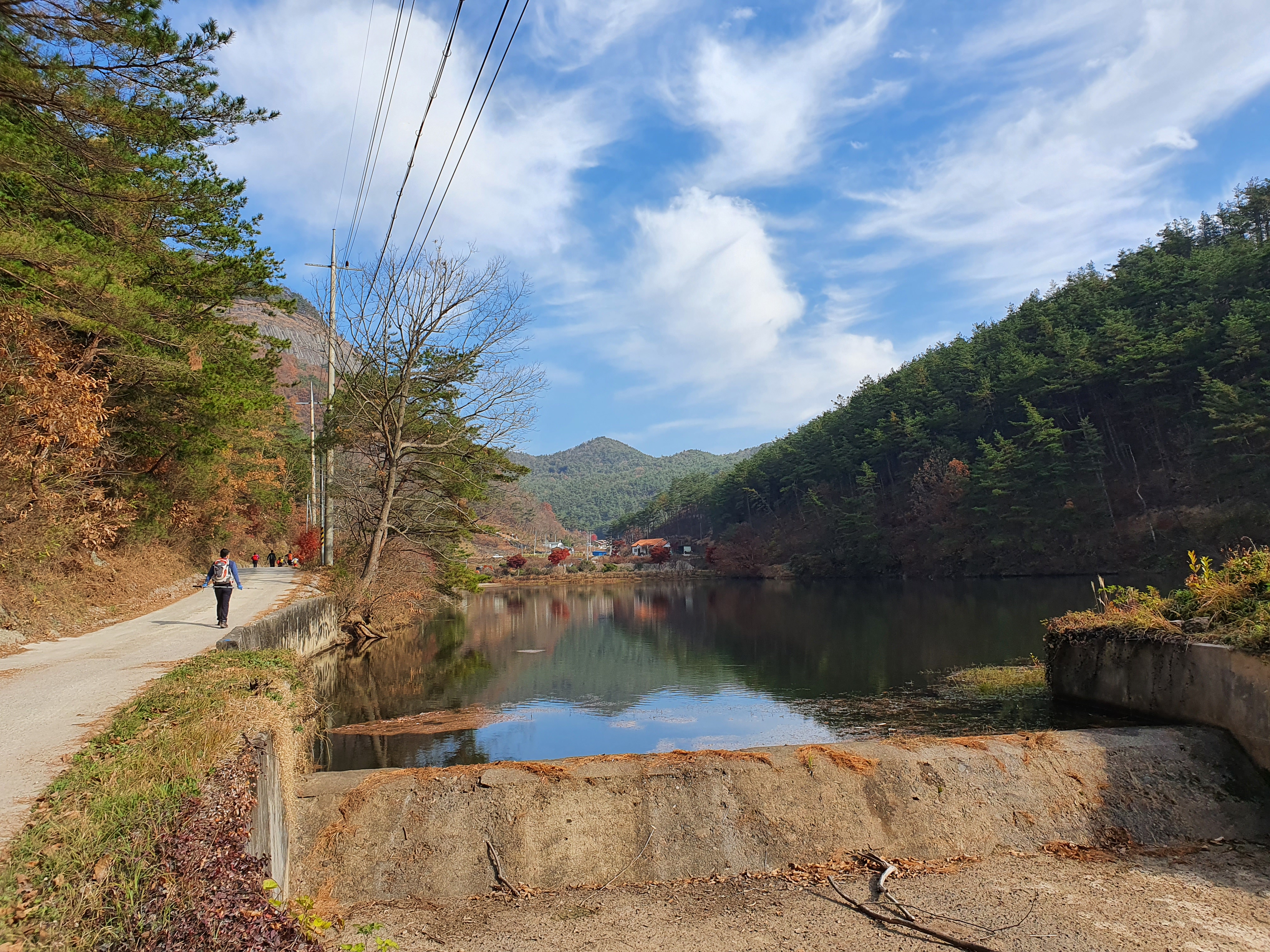 산행 초입 안성 저수지가 파란 가을 하늘과 잘 어울립니다.